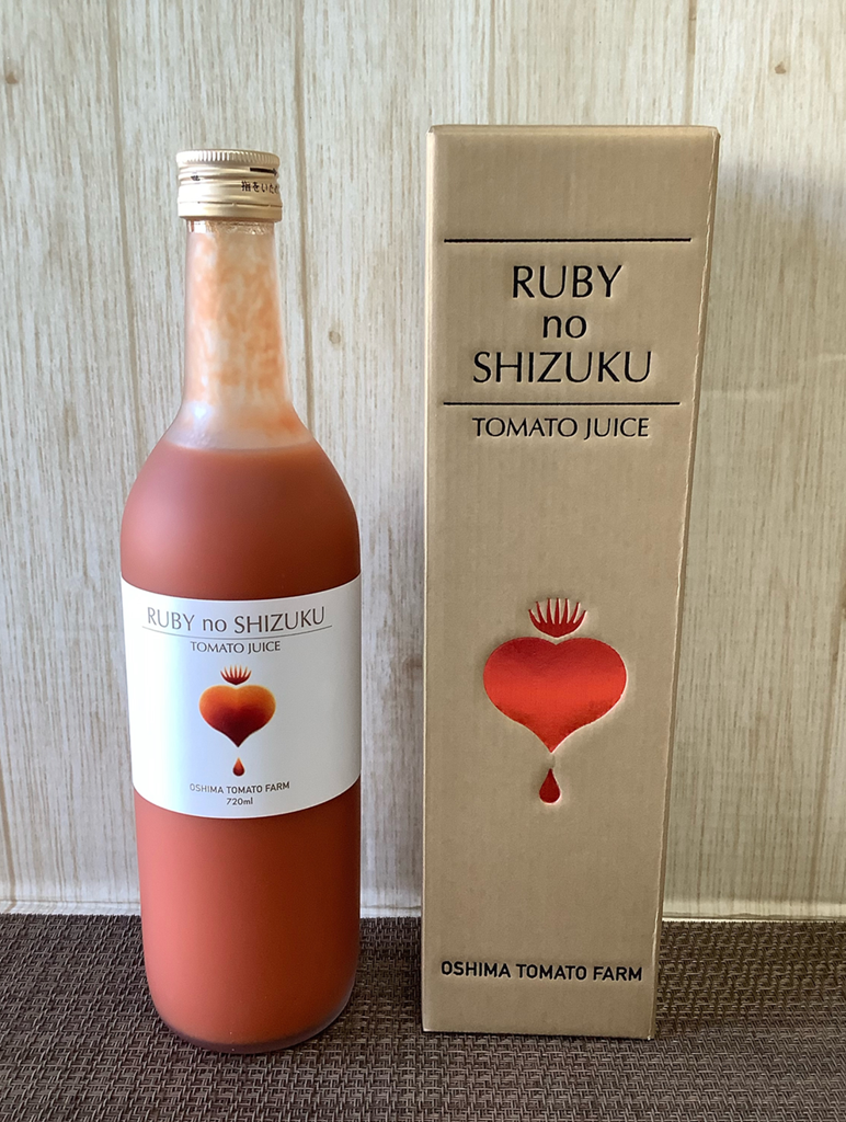 大島トマト「ルビーのしずく」を丸ごと搾った糖度10度以上の天然ジュースです。食塩不使用、保存料不使用なので、お子様でも安心してお召し上がりいただけます。